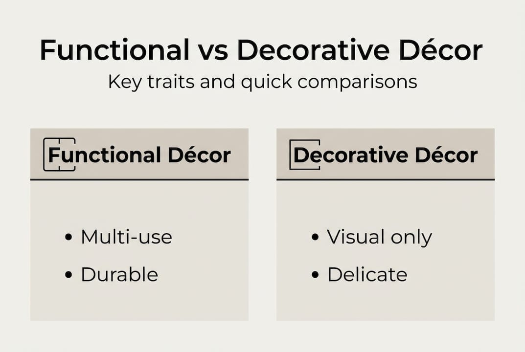 Here's a quick look at what separates functional décor from purely decorative choices: